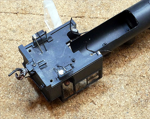 排障器もカッターナイフで切り込みを入れてハンダを外してから中央で切断して厚さ0.3mmの真鍮板で作ったスペーサーを入れてハンダ付け。