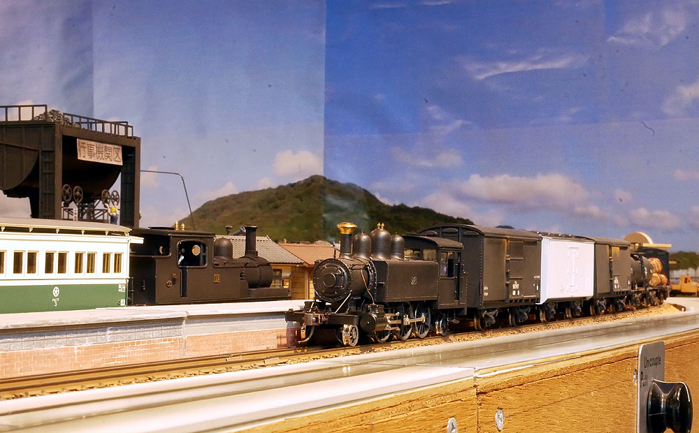 端正な仕上がりです。これを改軌する予定と言うと、「もったいない」「13mmのレールを併設したら」など助言?をもらいました。当レイアウトでガンガン走るためには16.5mmへの改軌を進めます。