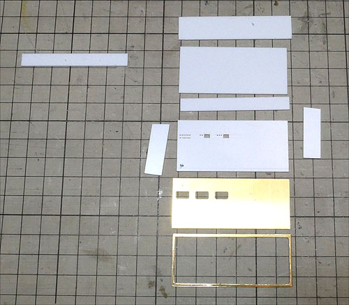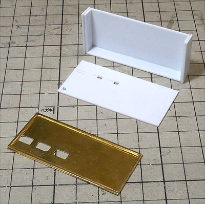 分電盤を作成。本体は1mmプラ板、前面は厚さ0.5mmの真鍮板。