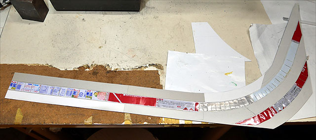 道路はボール紙製で、裏には鉄板(缶詰の缶を開いたもの)をゴム系ボンドで接着しています。