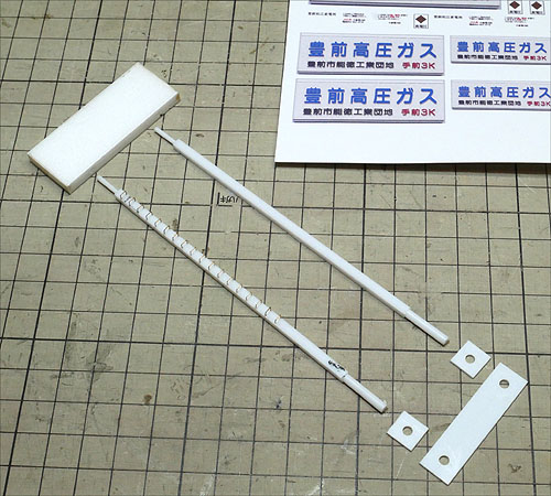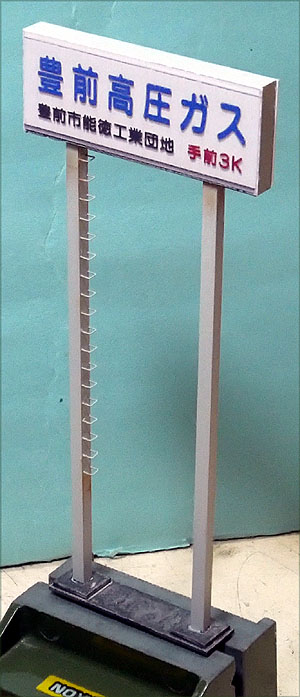 架線柱を立てるベースと「高圧ガス」看板を立てる所に木のブロックを接着。