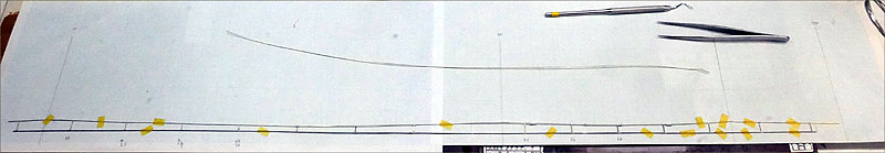道路のガードパイプは、Φ0.55mmの真鍮線です。方眼の上でハンダ付け。