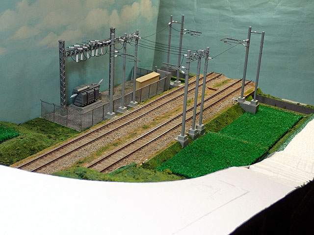 変電所の扉部分は自作です。標識類も貼付け済み。