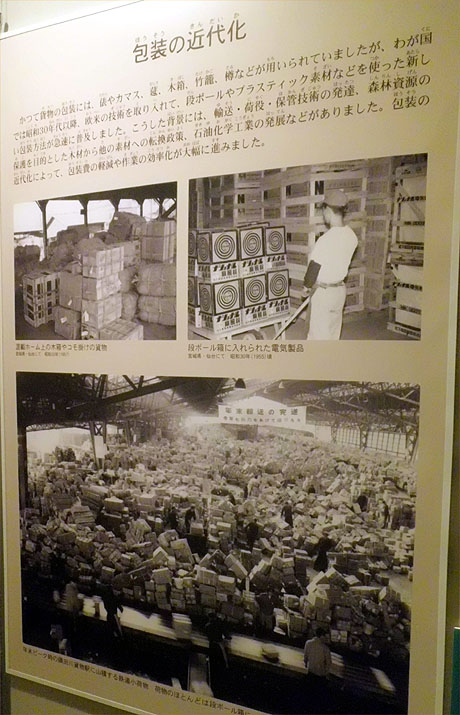 ここからは番外編。展示会・懇親会の前にまずは物流博物館を見学。荷物や貨物の梱包や積み込みを学習。(許可を得て撮影)