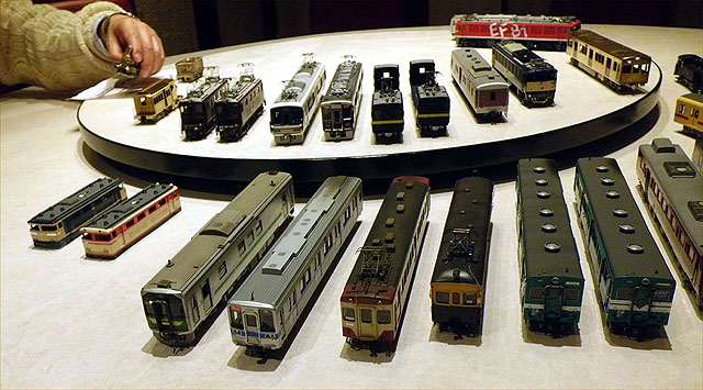 懇親会会場にて。作成中の車輛など。管理人は西鉄やJR九州のショーティーを持参。